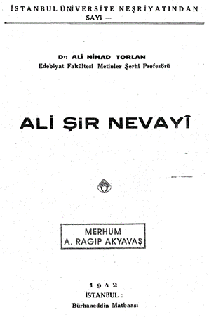 Али Ниҳод Тарлан. Алишер Навоий.