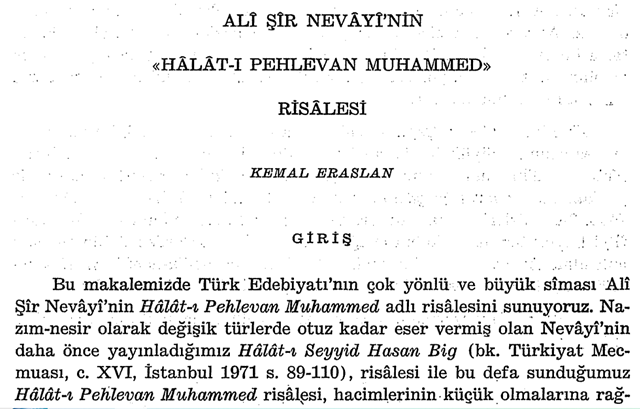 Камол Эраслон. Навоийнинг “Ҳолоти Паҳлавон Муҳаммад” рисоласи. ТУРКИЯДА НАВОИЙГА ДОИР ҚИЛИНГАН ТАДҚИҚОТЛАР-19