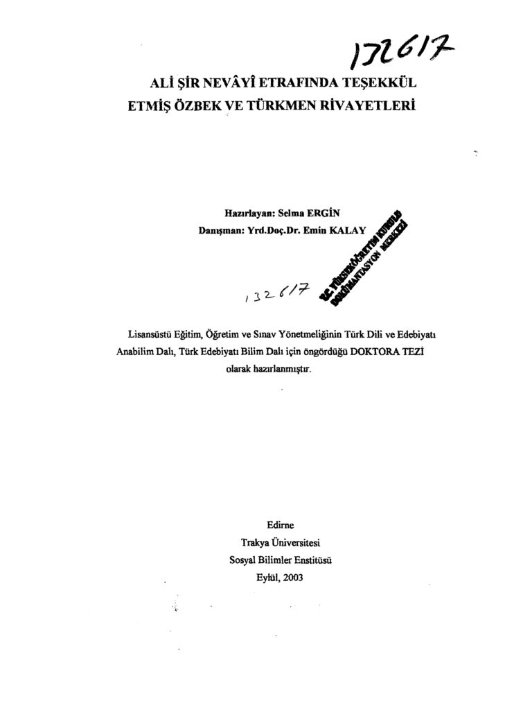 Докторлик диссертацияси. Илмий раҳбар - д-р Эмин Қалай. Эдирне Тракя университети, 2003.